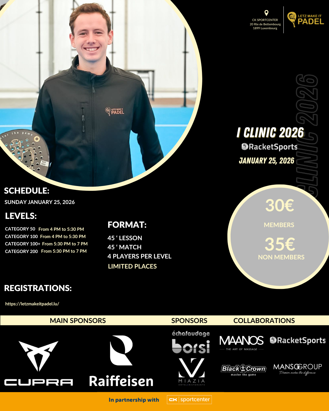 I Clinic 2026 Racket Sports : Elevate Your Padel Game with Enric Batalla Join us for I Clinic 2026 Racket Sports, an exclusive event designed fo...
